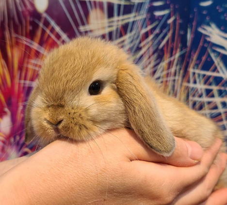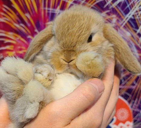 一番小柄な垂れ耳うさぎです。 人懐こくておっとりとしています。 大人になると体重は1.6kg~2kg 前後になります。 体型は大変小柄です。形の良い丸い大きな頭とお顔をしています♪ 朗らかで人懐こいです。^^ 抱っこは嫌がりません。 近くに行くと兄妹みんなですぐ駈け寄ってきてくれて、とっても可愛いです。 (*^ ^*) お顔の真横にある大きなオメメはクリンクリンです! プクプクほっぺ、厚みがあって形の良い短いお耳。 コートは、チョッピリムクムクでサラサラです。 可愛らしいオレンジカラーとまん丸の体型がチャームポイント! 大人になったらどんな可愛らしい子になるのかなぁ? 成長が楽しみなベビーちゃんです! 生きているぬいぐるみのように可愛らしいベビーちゃんをお探しのパパ、ママにピッタリ!オススメです。(o^^o)v インスタグラム ママとベビーちゃん達の動画です |
