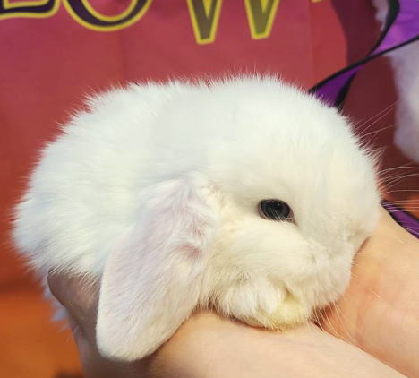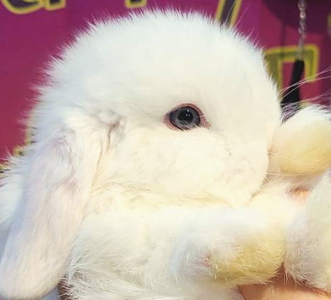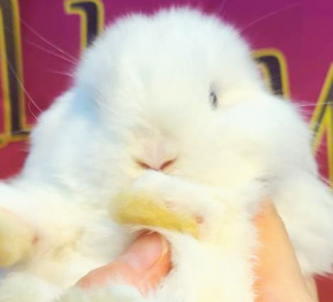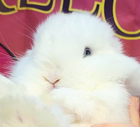 一番小柄な垂れ耳うさぎです。 人懐こくておっとりとしています。 大人になると体重は1.6kg~2kg 前後になります。 体型は小柄です。形の良い大きな丸い頭とお顔をしています♪ 大人しいけれどとっても人懐こいです。^^ 抱っこは嫌がりません。 近くに行くと姉妹みんなですぐ駈け寄ってきてくれて、とっても可愛いです。 (*^ ^*) お顔の真横にある大きな瞳はブルーグレーで白い体色にピッタリ! まるでブルーアイドホワイトカラーのうさちゃんのようです。 プクプクほっぺ、厚みがあって形の良いお耳、 クニョーン、ゆるふわな感じがたれぱんだみたいです (*^ ^*) コートは、チョッピリムクムク キレイな白色フロスティカラーがチャームポイント! 大人になったらどんな可愛らしい子になるのかなぁ? 成長が楽しみなベビーちゃんです! 生きているぬいぐるみのように可愛らしいベビーちゃんをお探しのパパ、ママにピッタリ!オススメです。(o^^o)v インスタグラム ママとベビーちゃん達の動画です |