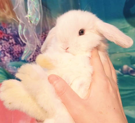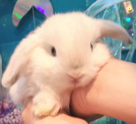 一番小柄な垂れ耳うさぎです。 人懐こくておっとりとしています。 大人になると体重は1.6kg~2kg 前後になります。 体型は大変小柄です。形の良い丸い大きな頭とお顔をしています♪ 朗らかで人懐こい、甘えっ子。^^ 抱っこは嫌がりません。 近くに行くとすぐ駈け寄ってきてくれて、とっても可愛いです。 (*^ ^*) お顔の真横にある丸い大きなお目々、丸いおでこ、 プックリほっぺ、厚みがあって形の良いお耳、 身体の色が真っ白に見える、ブルーアイドホワイトみたいなカラーがチャームポイント! 大人になったらどんなカラーになるのか? 成長が楽しみなベビーちゃんです! トビキリ可愛らしい、真っ白な生きているぬいぐるみのように可愛らしいベビーちゃんをお探しのパパ、ママにピッタリ!オススメです。(o^^o)v インスタグラム ママとベビーちゃん達の動画です |