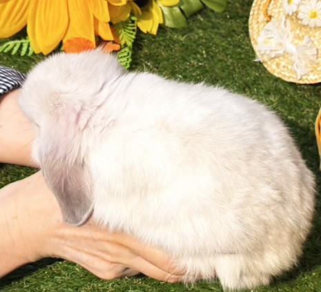 一番小柄な垂れ耳うさぎです。 人懐こくておっとりとしています。 大人になると体重は1.6kg~2kg 前後になります。 体型は大変小柄です。形の良い丸い大きな頭とお顔をしています♪ 穏やかで人懐こい、甘えっ子。^^ 抱っこは嫌がりません。 近くに行くとすぐ駈け寄ってきてくれて、とっても可愛いです。 (*^ ^*) お顔の真横にある丸いトビキリ大きなお目々、 プクプクほっぺ、厚みがあって形の良い短いお耳、 身体の色が淡くて、綺麗なフロスティカラーがチャームポイント! 大人になったらどんなカラーになるのか? 成長が楽しみなベビーちゃんです! トビキリ可愛らしい、ムックムクな生きているぬいぐるみのように可愛らしいベビーちゃんをお探しのパパ、ママにピッタリ!オススメです。(o^^o)v インスタグラム ママとベビーちゃん達の動画です |