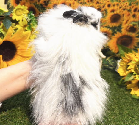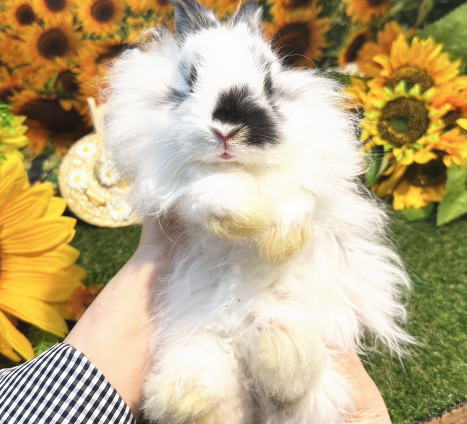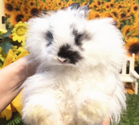 長毛種の中で1番小さなサイズの立ち耳うさぎです。 小型種に多い、怖がり、神経質な性格が少なく人懐こい子が多いです。 大人になると体重は 1.2g ~ 1.6 kg 程度になります。 体型は大変小柄です。大きな頭とお顔がとっても可愛らしいベビーちゃんです。 朗らかで、人懐こいです。抱っこは嫌がりません。 近くに行くとママと一緒にワッと寄ってきてくれます! サラサラの毛質をしています。長めで毛量がありますがお手入れには手がかからないと思っています。 お顔の真横にあるまん丸な大きなオメメは、ドワーフホトのようなアイラインが綺麗に入っています!^^ 形の良い短いお耳、丸いおでこ、ほっぺの飾り毛はタップリ! ブロークンの柄が少ない白色コートがチャームポイント! モコモコのぬいぐるみのように可愛らしいベビーちゃんをお探しのパパ、ママにピッタリ!おススメです。(o^^o)v ☆撮影は生後50日くらいです。 インスタグラム ママとベビーちゃん達の動画です | |||