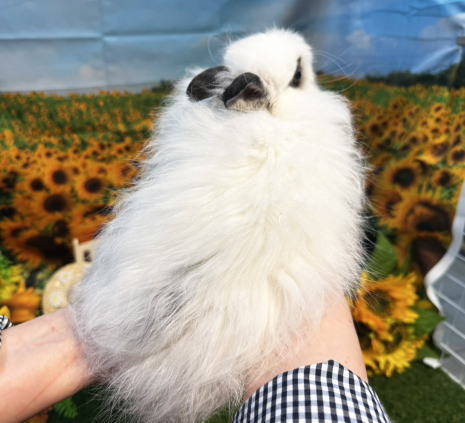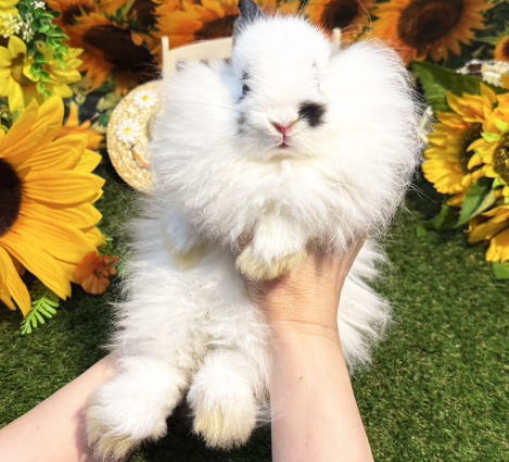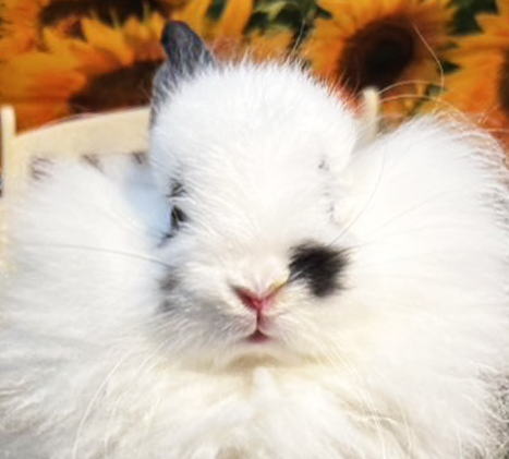 長毛種の中で1番小さなサイズの立ち耳うさぎです。 小型種に多い、怖がり、神経質な性格が少なく人懐こい子が多いです。 大人になると体重は 1.2g ~ 1.6 kg 程度になります。 体型は大変小柄です。大きな頭とお顔がとっても可愛らしいベビーちゃんです。 朗らかで、人懐こいです。抱っこは嫌がりません。 近くに行くとママと一緒にワッと寄ってきてくれます! サラサラの毛質をしています。長めで毛量がありますがお手入れには手がかからないと思っています。 お顔の真横にあるまん丸な大きなオメメは、ドワーフホトのようなアイラインが綺麗に入っています!^^ 形の良い短いお耳、丸いおでこ、ほっぺの飾り毛はタップリ! ブロークンの柄が大変少ない白色コートがチャームポイント! モコモコのぬいぐるみのように可愛らしいベビーちゃんをお探しのパパ、ママにピッタリ!おススメです。(o^^o)v ☆撮影は生後50日くらいです。 インスタグラム ママとベビーちゃん達の動画です | |||
