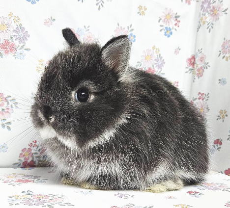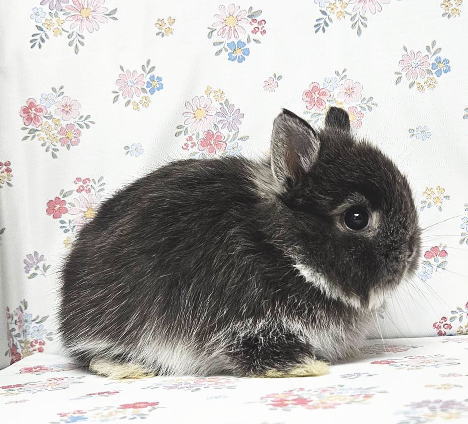 長毛種の中で1番小さなサイズの立ち耳うさぎです。 小型種に多い、怖がり、神経質な性格が少なく人懐こい子が多いです。 大人になると体重は 1.2g ~ 1.6 kg 程度になります。 体型は大変小柄です。とっても大きな丸い頭とお顔が可愛らしいベビーちゃんです。 のんびり、大人しい、甘えっ子。 抱っこは嫌がりません。 近くに行くと兄妹揃って寄ってきてくれます。 毛量、毛の長さはお手入れするのに程良く、 毛質はサラッとしているコートなのでお手入れには手がかからないと思っています。 お顔の真横にあるまん丸なトビキリ大きなお目々、 形の良いトビキリ短いお耳、ムクッとした丸いおでこ、丸い頭、 バランスの取れている丸い体型がチャームポイント! 黒色の体色が少し淡いような気がしますが・・・ 大変タイプが良いと思える成長が楽しみなベビーちゃんです (*^ ^*)b タイプの良い、ちっこくて可愛らしいベビーちゃんをお探しのパパ、ママにピッタリ!おススメです。(o^^o)v インスタグラム ママとベビーちゃん達の動画です | |||