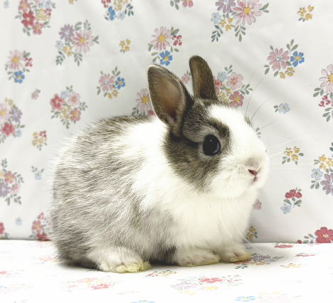 小さなサイズの立ち耳うさぎです。 愛くるしい容姿は絵本の主人公ピーターラビットを想像させます。 大人になると体重は 850g ~ 1.2 kg 程度になります。 体型は普通サイズです。形の良い丸い頭とお顔をしています♪ 人懐こい優しい子。^^ 抱っこは嫌がりません。 近くに行くとすぐに寄ってきてくれて、とっても可愛いです。 (*^ ^*) お顔の真横にある丸いお目々、幅広なおでこは白い鼻筋?が 笑 プックリほっぺ、幅のある丸い体型 個性的なパンダ柄模様がチャームポイント! ぬいぐるみみたいな、可愛らしいベビーちゃんをお探しのパパ、ママにピッタリ!オススメです。(o^^o)v インスタグラム ママとベビーちゃん達の動画です |
