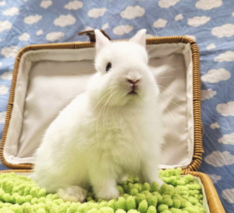 小さなサイズの立ち耳うさぎです 愛くるしい容姿は絵本の主人公ピーターラビットを想像させます 大人になると体重は 850g ~ 1.2 kg 程度になります 体型は小柄です丸い頭と可愛らしいお顔をしている 穏やかな人懐こいベビーちゃんです! 抱っこは大丈夫♪ 近くに行くと五つ子ちゃん、5人兄弟姉妹の玉子ちゃん達はすぐに駆け寄ってくれます! お顔の真横にあるまん丸な宝石みたいなブルーのオメメ(ボールドアイ) 形の良い厚みのある短いお耳、幅広なほっぺ、 真っ白で綺麗な、手触りのよいコート バランスの取れているスッとした体型がチャームポイント♪ 綺麗に座るのが上手な女の子です!^^ 優しい性格の可愛らしいベビーちゃんをお探しのパパ、ママにピッタリ!おススメ!です(o^^o)v インスタグラム ベビーちゃんの動画です |